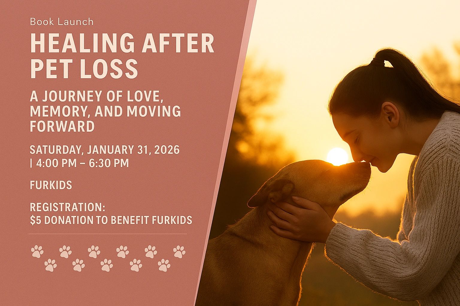 On Saturday January 31st we invite you to gather for a very special event: The launch of Where the Pawprints Lead, a book born from love, memory and the journey of healing after pet loss.